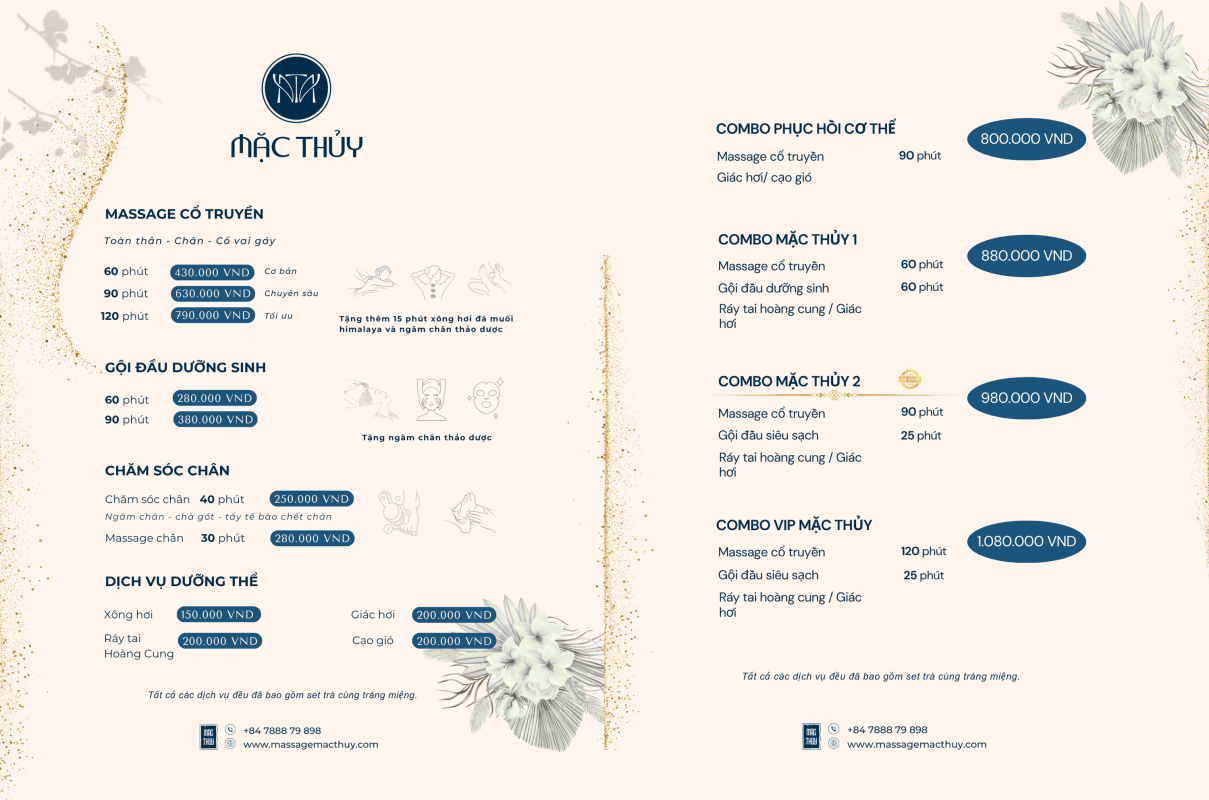 BẢNG GIÁ MASSAGE MẶC THỦY